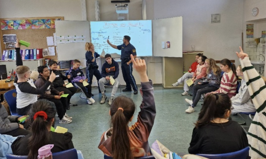 Was empfinden wir eigentlich alles als Gewalt? Wenn jemand einen anderen beleidigt, anspuckt, sich über seine Klamotten lustig macht, etwas klaut oder aus Spaß geschlägert wird? Im November kamen die Jugendkontaktbeamten Arthur Gruber und Linda Günzel zu den 5. Klassen, um die Kinder spielerisch an das Thema „Gewalt“ heranzuführen. Schnell wurde klar, dass Gewalt von jedem unterschiedlich empfunden wird. Aus eigenen Erfahrungen erzählten die Schüler, dass viele es als ganz normal ansehen, wenn man sich auf dem Schulweg oder in der Pause aus Spaß herumschubst, sich boxt oder ein Bein stellt. Dass manches jedoch ganz und gar nicht lustig ist, verstanden die 5.Klässler beim Reflektieren über ihre eigenen Gefühle. Gemeinsam wurden verschiedene Formen von Gewalt erarbeitet, über Mobbing gesprochen und Gründe überlegt, weshalb jemand beispielsweise magersüchtig wird und sich dabei selbst Schaden zufügt. „Was kann man dann tun, wenn man Gewalt von anderen erfährt – egal ob körperlich oder seelisch?“, wollte Gruber abschließend von den Kindern wissen. Und nach vier Schulstunden Antigewalttraining waren sich alle einig: „Wir sagen einem Erwachsenen Bescheid und holen uns Hilfe!“ Dafür seien Eltern, Lehrer, Schulleitung und sogar die Polizei in vielen Fällen die richtigen Ansprechpartner. Wichtig sei, dass man nicht alleine bleibt mit seinem Kummer, sondern sich von anderen unterstützen lässt!