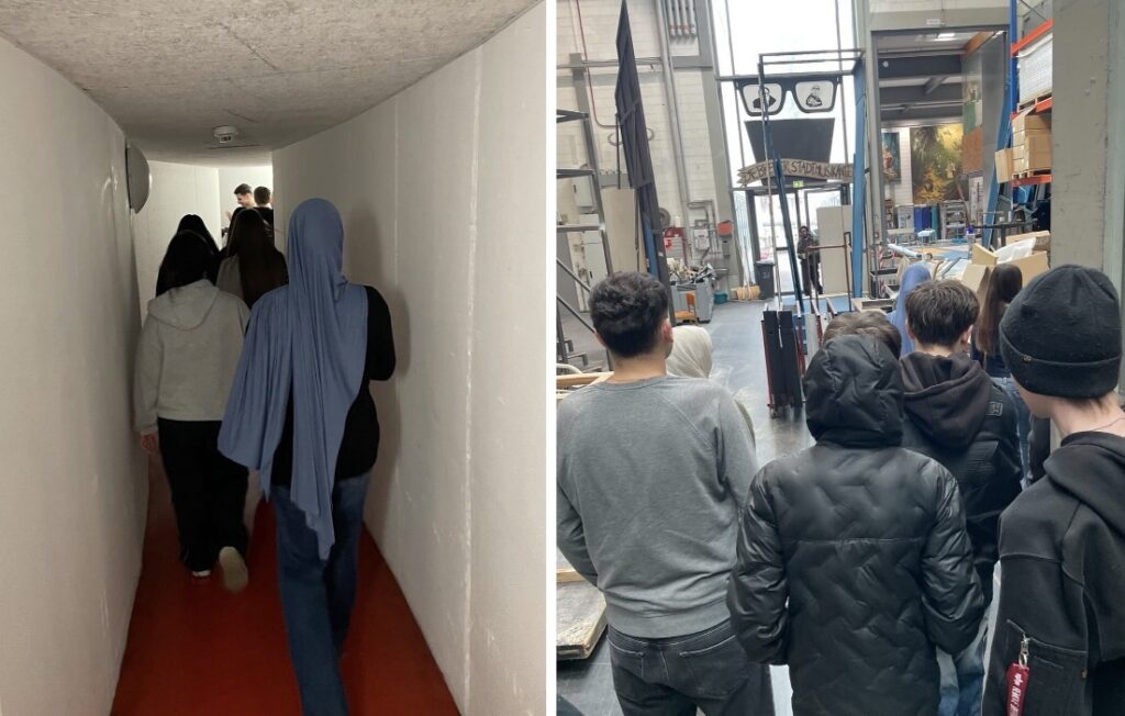 Am Dienstag, den 17.03., besuchte die Klasse 10bM das Theater Hof und erhielt spannende Einblicke hinter die Kulissen. Bei einer Führung lernten die Schülerinnen und Schüler unter anderem die Maske, die Kostümabteilung und die Malwerkstatt kennen.