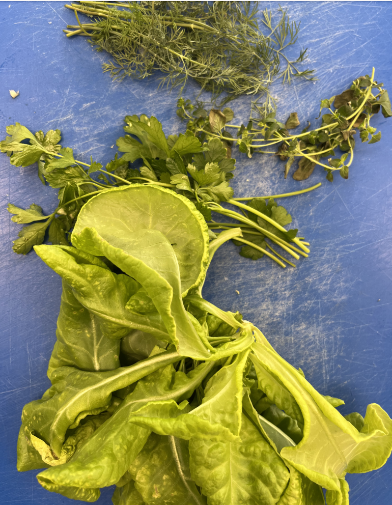 Die Klasse 9b hat im ES-Unterricht diese Woche erstmals von unserer Homefarm geerntet: Petersilie, Dill, Oregano und Blattsalat.
