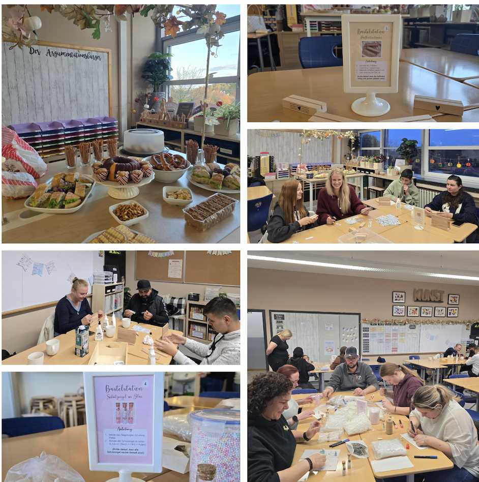 Neben dem Basteln stand auch das Miteinander im Mittelpunkt: Eltern und Kinder nutzten die Gelegenheit, im vertrauten Schulumfeld gemeinsam Zeit zu verbringen, sich untereinander und mit den Lehrkräften auszutauschen und den Schulalltag einmal von einer anderen Seite zu erleben. Durch das gemeinsame Tun wurde nicht nur die Klassengemeinschaft gestärkt, sondern auch das Gefühl, Schule als gemeinsamen Ort des Lernens und Erlebens zu gestalten.