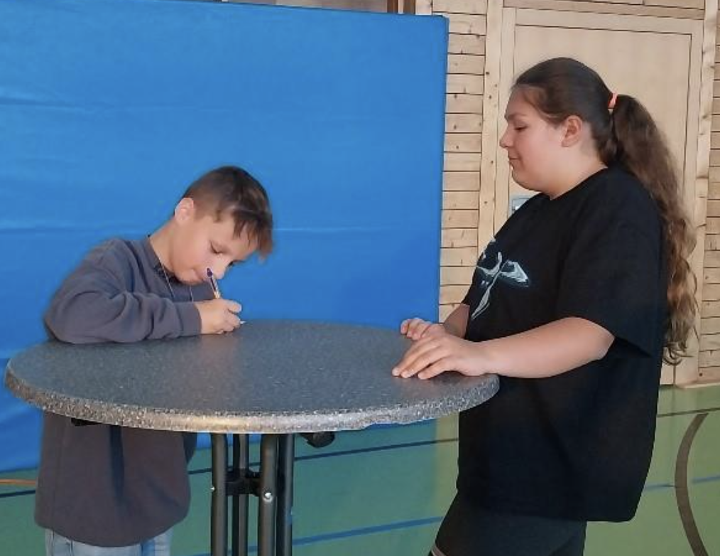 Vor den Aufführungen standen ab Januar wöchentliche Proben und eine anstrengende Theaterprobenwoche mit ganztägigen Proben unter der Leitung von Frau Wagner. Mit viel Energie und Durchhaltevermögen haben sich die zehn Darstellerinnen und Darsteller durch das Textlernen und das Spiel gekämpft und das mit Erfolg!  In fünf Vorstellungen vor Eltern, Freunden und den verschiedenen Klassenstufen zeigten sie, in beeindruckender Weise, was sie gelernt hatten und wie gut sie sich in die jeweilige Rolle hineinversetzen können. Eine tolle Leistung!