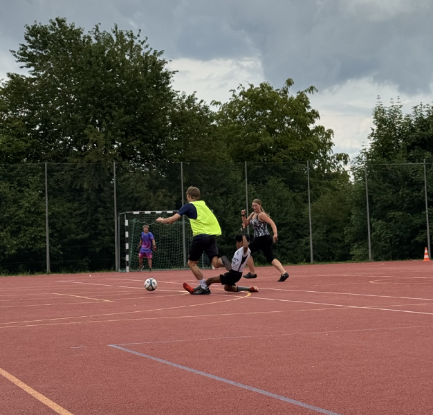 Am 11.07.2025 fand im Rahmen des Schulfests das mit Spannung erwartete Finale der Pausenhof-EM statt. Die Klasse 6c trat gegen die 8b an. Zur Halbzeit stand es noch 0:0 – ein Zeichen für das ausgeglichene und hart umkämpfte Spiel. In der zweiten Hälfte konnte sich die 8b schließlich mit 2:0 durchsetzen und sicherte sich den Turniersieg. Besonders lobenswert: die faire und respektvolle Spielweise beider Teams.