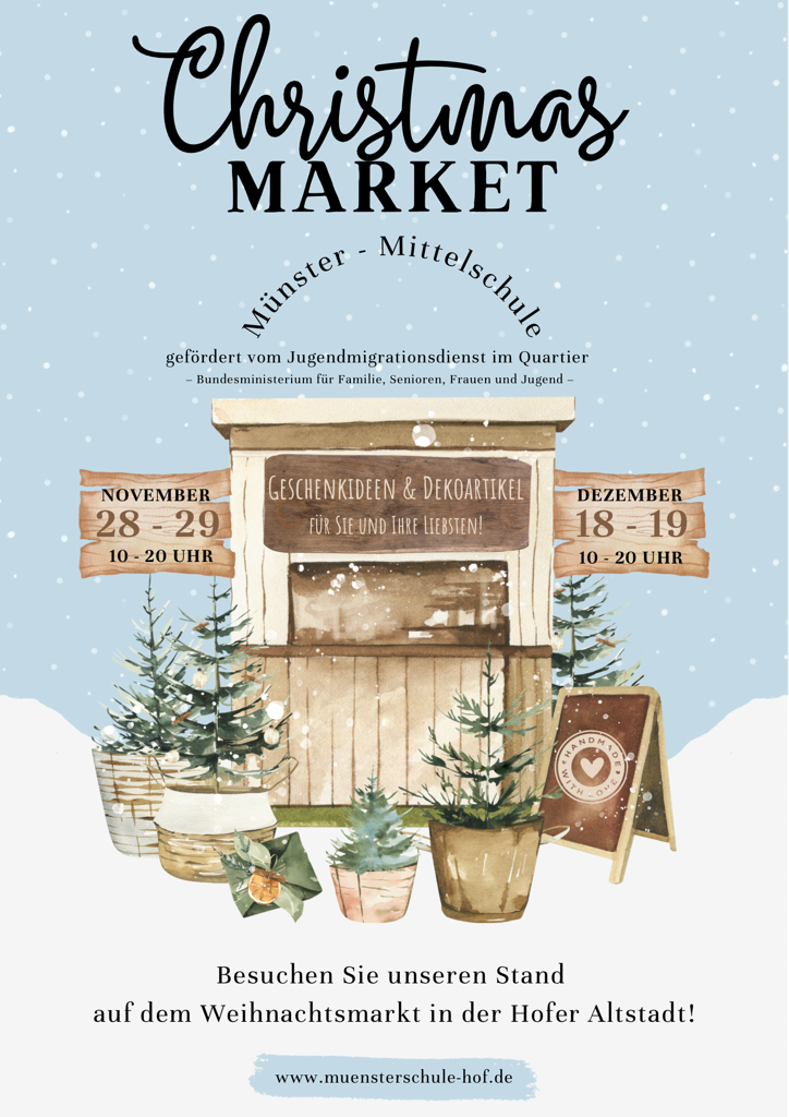 Die Postkarten können beim Weihnachtsmarkt gegen Spende erworben werden. Das Motiv stammt aus dem Kunstunterricht der 8cM von Dajan.