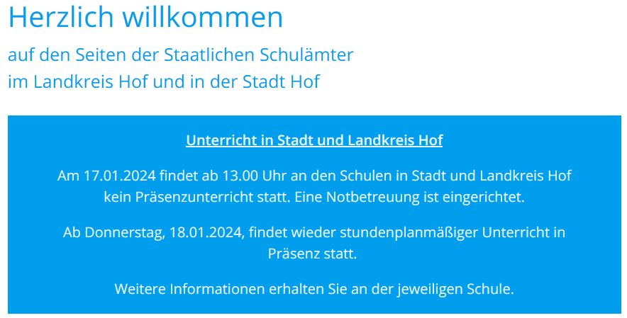 Dies sind die aktuellsten Informationen. Anbei noch ein Link von der Seite des Schulamts Hof.