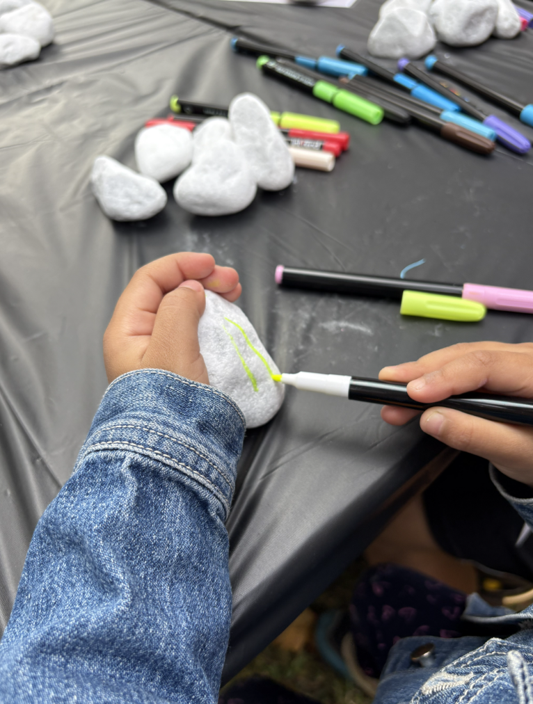 Ein Highlight bot dabei die Münsterschule, die mit einer kreativen Aktion zum Mitmachen einlud: Kinder konnten bunte Steine bemalen, die sie anschließend als persönliche Erinnerung mit nach Hause nehmen durften. Mit Farben, Mustern und Symbolen gestalteten die Mädchen und Jungen ihre Steine als kleine Botschaften für Vielfalt, Zusammenhalt und Kinderrechte.